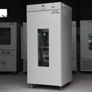 DHG-9925A大型电热鼓风干燥箱用作粉末干燥、烘培以及各类玻璃容器的消毒和灭菌等。特别适合于对干燥热敏性、易分解、易氧化物品进行快速高效的干燥处理。可广泛应用于生物化学,化工制药、医疗卫生、农业科研、环境保护等研究领域,对物品进行烘焙、干燥、溶解、消毒等部门。